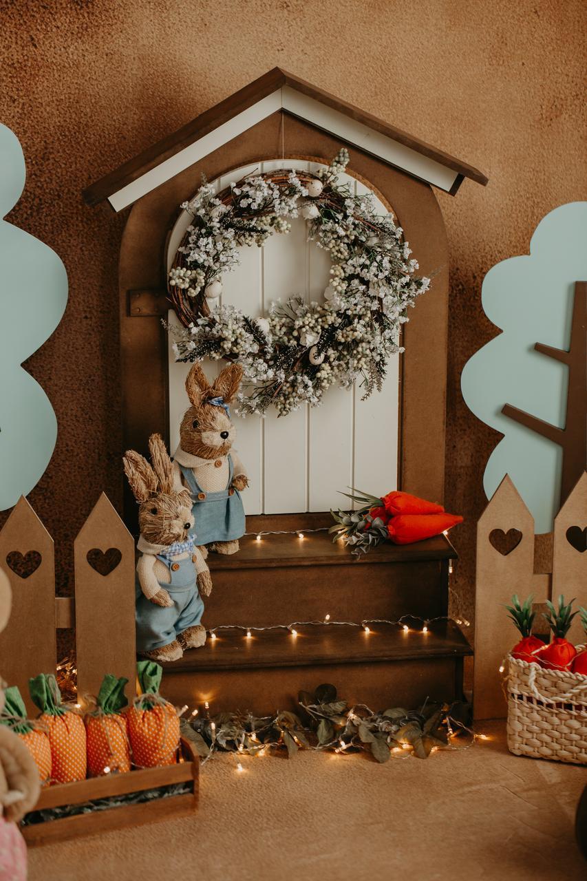 A Portinha de Páscoa com degrau é aquele detalhe mágico que faz toda a diferença no cenário. Ela cria a sensação de um cantinho secreto, como se o coelhinho morasse ali, deixando os ensaios muito mais criativos, delicados e cheios de fantasia.